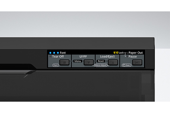 Métodos de alimentación de papel | Alimentación por fricción (entrada delantera/trasera, salida delantera), alimentación del tractor de empuje (entrada trasera, salida delantera) Alimentador: Tractor de empuje trasero, Portarrollos de papel (opcional) |
